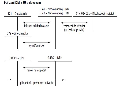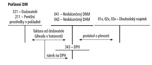 O pořízení dlouhodobého nehmotného a hmotného majetku a technického zhodnocení se účtuje na vrub příslušného účtu účtové skupiny 04 – Nedokončený dlouhodobý nehmotný a hmotný majetek nebo přímo na vrub příslušných účtů účtových skupin 01 – Dlouhodobý nehmotný majetek, 02 – Dlouhodobý hmotný majetek odpisovaný nebo 03 – Dlouhodobý hmotný majetek neodpisovaný, pokud při pořízení dlouhodobého nehmotného a hmotného majetku a technického zhodnocení nevznikají náklady související s jeho pořízením, se souvztažným zápisem ve prospěch příslušných účtů účtových skupin například: