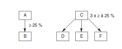 Přímo kapitálově spojenými osobami jsou A a B, i všechny čtyři subjekty C až F navzájem.